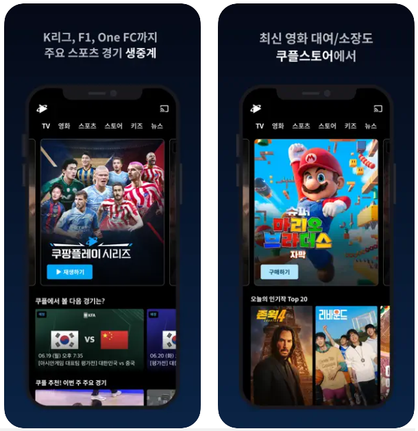 쿠팡플레이에서 영화나 드라마는 물론 주요 스포츠 경기까지 생중계를 하고 있습니다. 이번 2026 월드컵 아시아 예선전에서 모바일로 생중계를 볼 수 있었던 것은 쿠팡플레이 단 한 곳이었죠. 어느덧 쿠팡이 OTT계의 강자로 우뚝 일어섰네요. 쿠팡플레이를 설치하시려면 핸드폰 기종에 따라 다운로드하세요. 아이폰이 아니라면 위에 있는 구글 플레이를 다운로드하시면 됩니다.